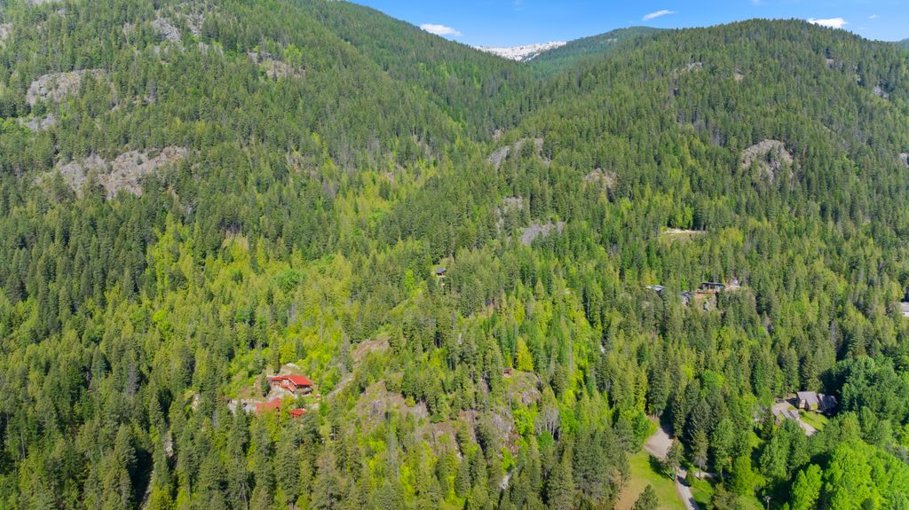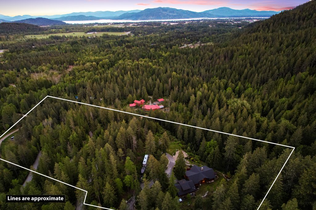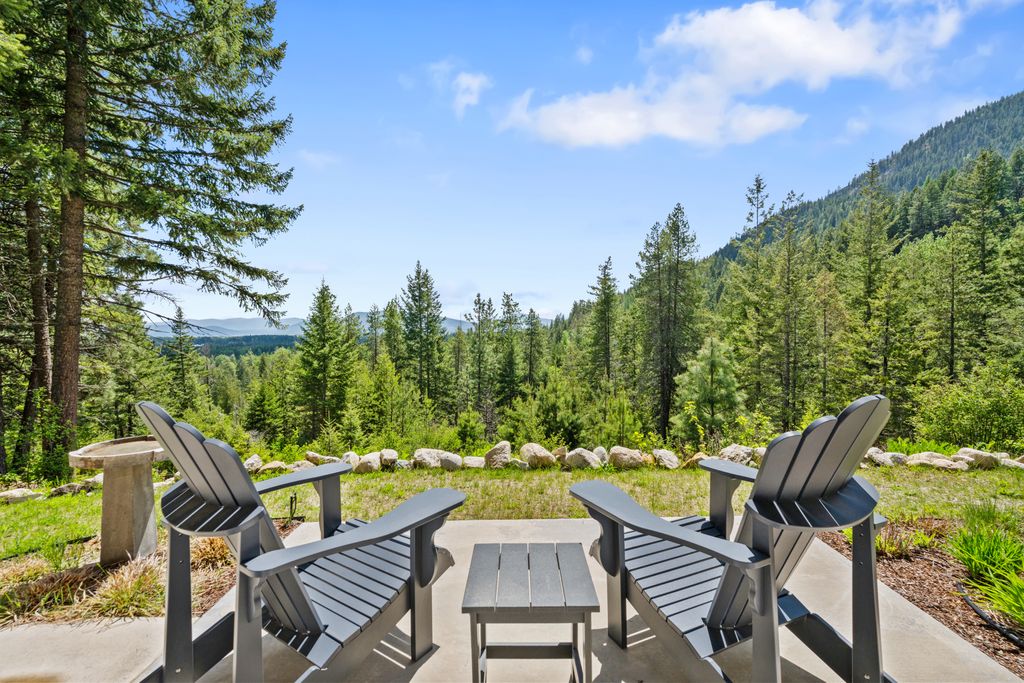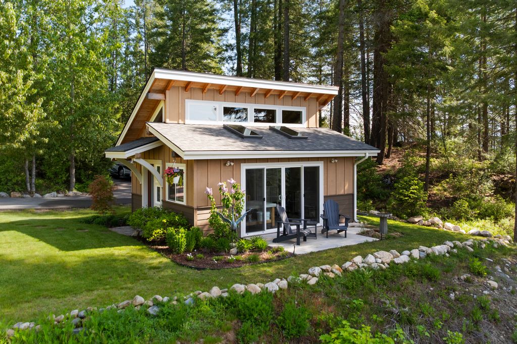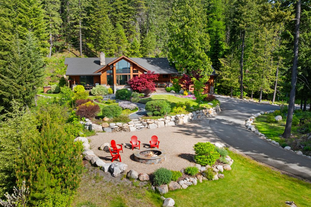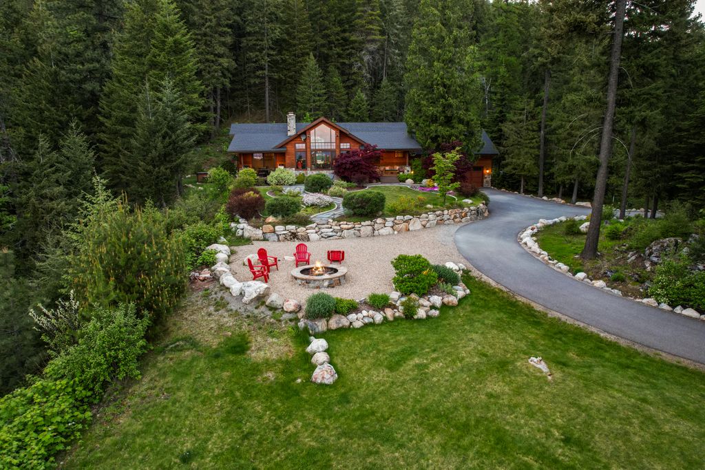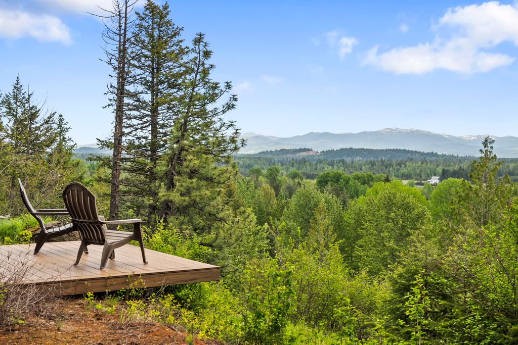 Meticulously constructed and artfully nestled into the foothills below Schweitzer Mountain, this exceptional property offers a rare blend of luxury, comfort, and natural beauty. With sweeping views of the surrounding mountains and the sparkling lake beyond, this home is a true haven for those seeking serenity, space, and inspired design. Bathed in abundant sunshine and softened by gentle mountain breezes, the home welcomes each day with stunning sunrises and a chorus of native wildlife. This 7.93-acre property is dotted with huckleberry bushes and thoughtfully landscaped with deer-resistant shrubs and perennials, providing a low-maintenance yet vibrant outdoor living experience. Inside, an open floorplan showcases exquisite craftsmanship, from exposed cedar beams, soaring tongue-and-groove ceiling to wide plank, wood grain tile flooring. Floor-to-ceiling windows frame breathtaking views and flood the home with natural light, while radiant in-floor heating keeps every space warm and inviting. The full masonry gas fireplace, clad in real stone veneer, anchors the great room with timeless mountain elegance. The gourmet kitchen is a chef’s dream, featuring ivory quartz countertops, a contemporary stone backsplash, high-end appliances and ample storage. The primary suite is a true retreat, with private access to two outdoor spaces, including a secluded deck with hot tub overlooking tranquil Schweitzer Creek. The en-suite bath is filled with natural light and finished with quartz countertops and heated travertine floors. Additional living spaces include a beautifully appointed 700 SF guest studio above the garage with a separate entrance, full kitchen, and bath—perfect for multi-generational living or guest accommodations. Two detached 320 SF custom studio spaces expand the property’s versatility. One features a kitchenette and bathroom, ideal for a home office, art studio, or guest quarters. The other is an off-grid escape overlooking the peaceful Selle Valley, offering unmatched privacy and inspiration. Whether you’re taking in the views or enjoying a peaceful stroll down to Schweitzer Creek, this one-of-a-kind mountain sanctuary offers not only a place to live—but a way of life.