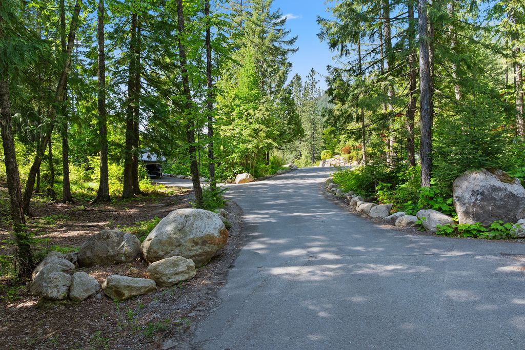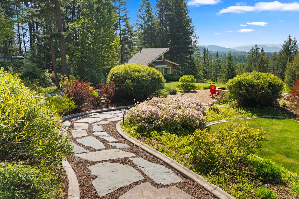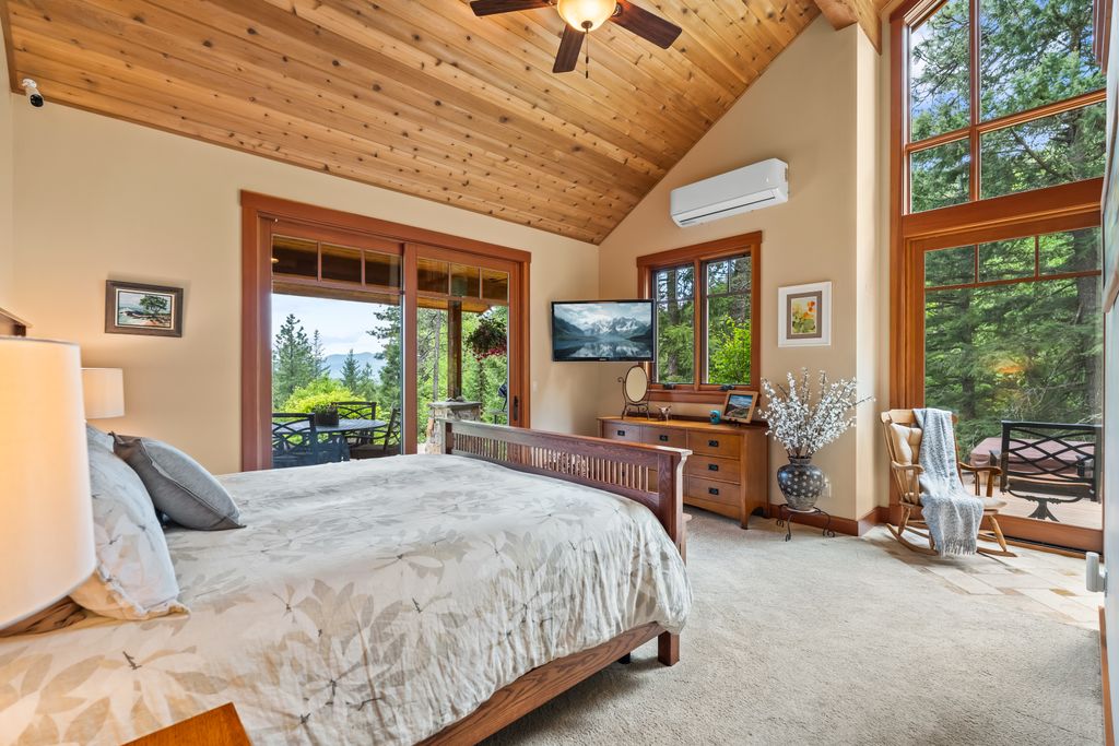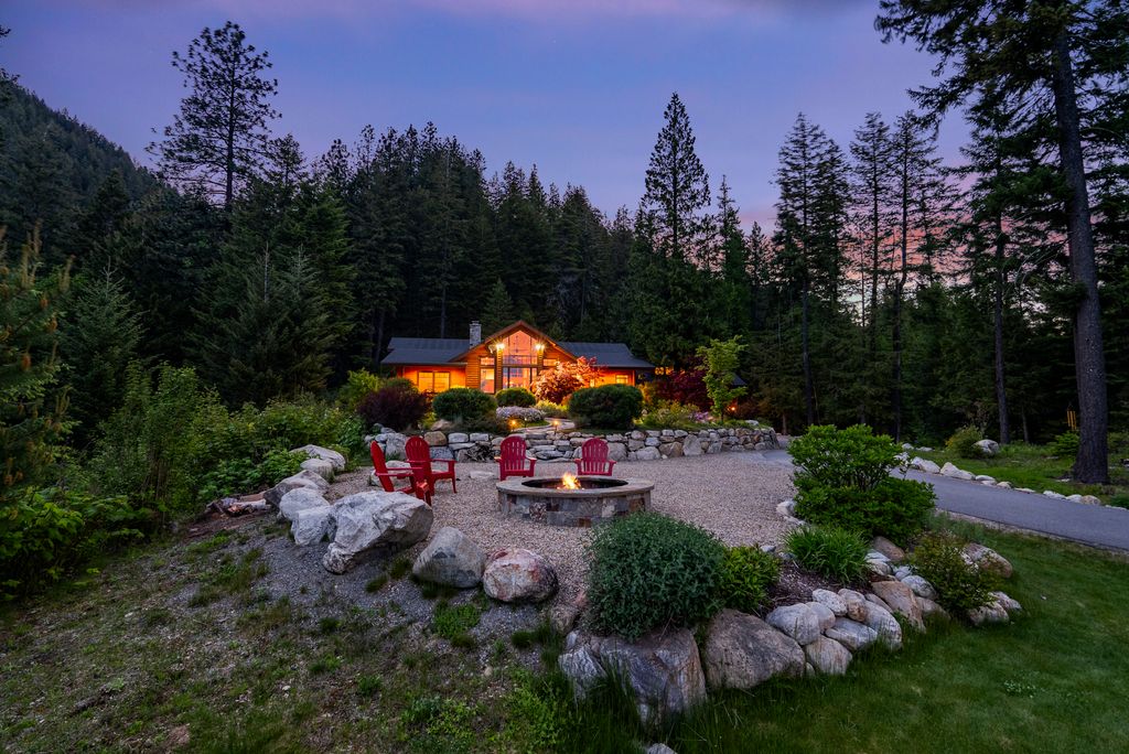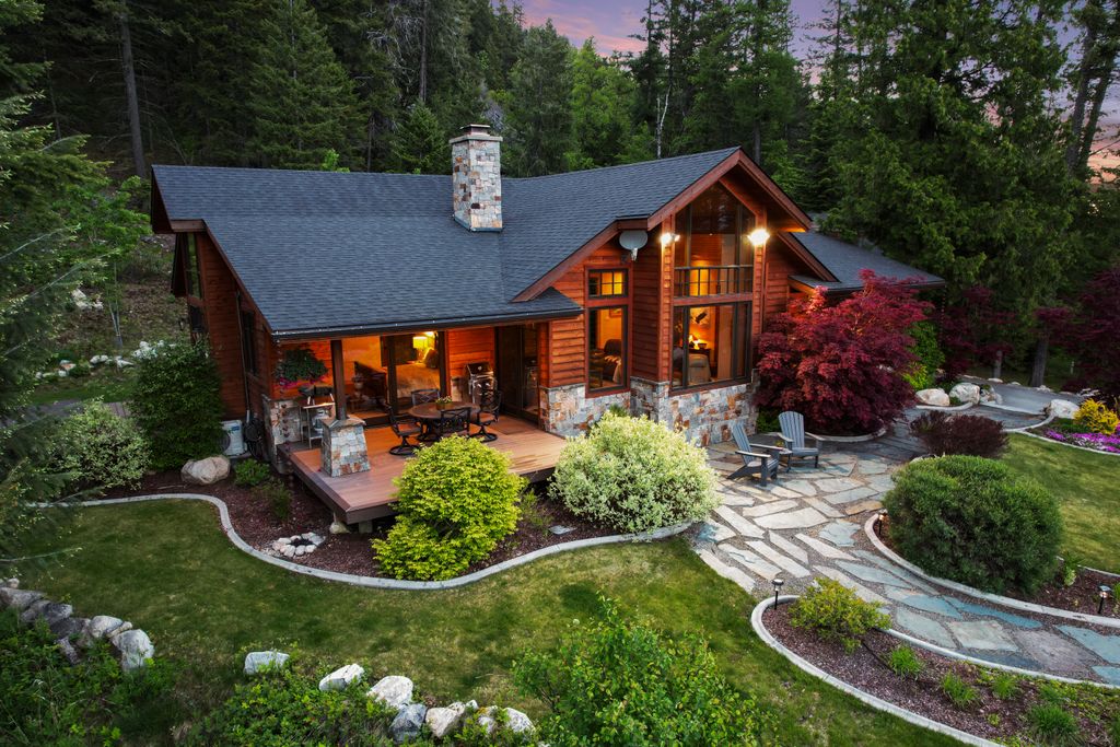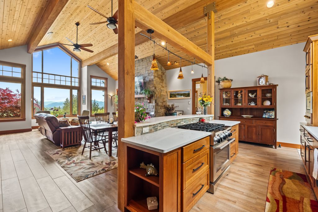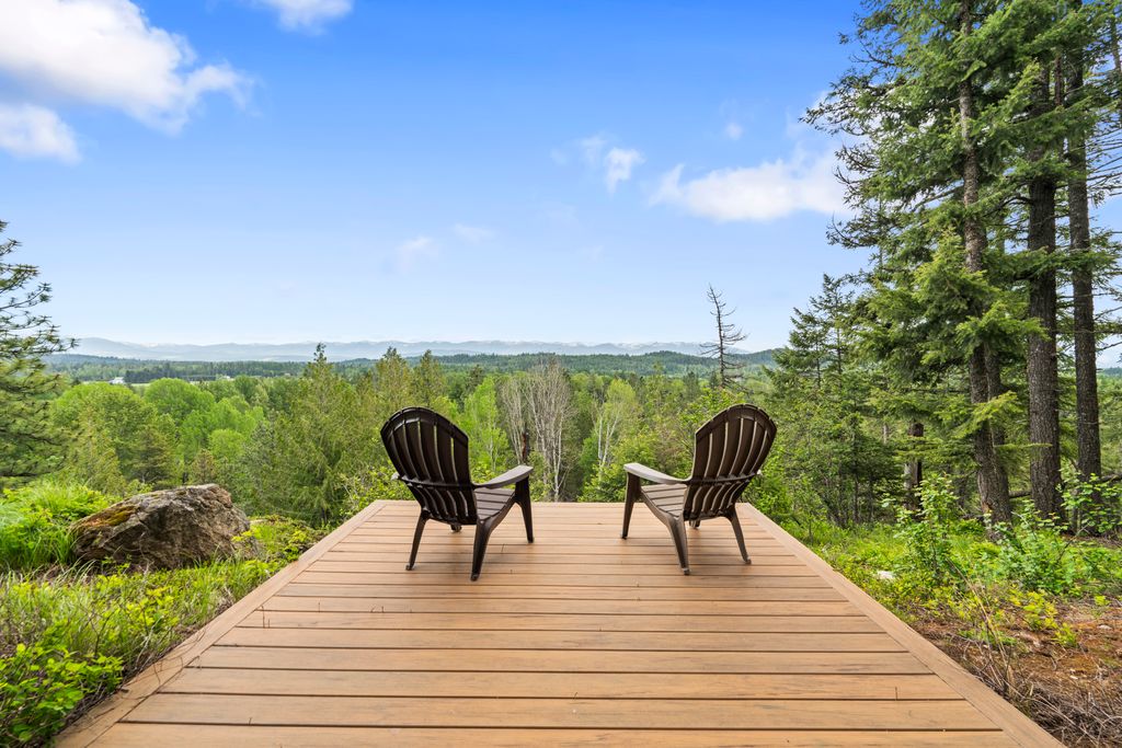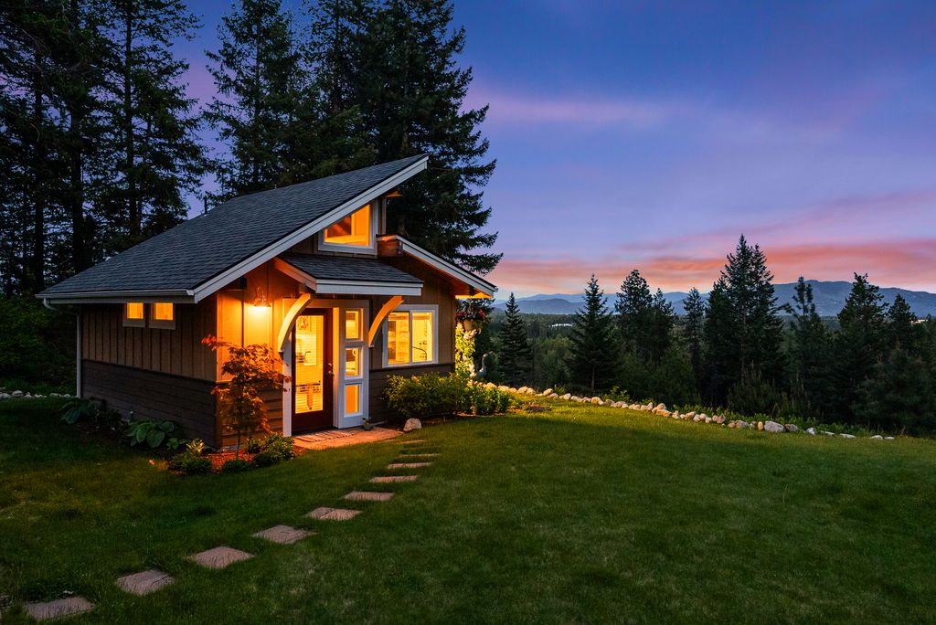 Meticulously constructed and artfully nestled into the foothills below Schweitzer Mountain, this exceptional property offers a rare blend of luxury, comfort, and natural beauty. With sweeping views of the surrounding mountains and the sparkling lake beyond, this home is a true haven for those seeking serenity, space, and inspired design. Bathed in abundant sunshine and softened by gentle mountain breezes, the home welcomes each day with stunning sunrises and a chorus of native wildlife. This 7.93-acre property is dotted with huckleberry bushes and thoughtfully landscaped with deer-resistant shrubs and perennials, providing a low-maintenance yet vibrant outdoor living experience. Inside, an open floorplan showcases exquisite craftsmanship, from exposed cedar beams, soaring tongue-and-groove ceiling to wide plank, wood grain tile flooring. Floor-to-ceiling windows frame breathtaking views and flood the home with natural light, while radiant in-floor heating keeps every space warm and inviting. The full masonry gas fireplace, clad in real stone veneer, anchors the great room with timeless mountain elegance. The gourmet kitchen is a chef’s dream, featuring ivory quartz countertops, a contemporary stone backsplash, high-end appliances and ample storage. The primary suite is a true retreat, with private access to two outdoor spaces, including a secluded deck with hot tub overlooking tranquil Schweitzer Creek. The en-suite bath is filled with natural light and finished with quartz countertops and heated travertine floors. Additional living spaces include a beautifully appointed 700 SF guest studio above the garage with a separate entrance, full kitchen, and bath—perfect for multi-generational living or guest accommodations. Two detached 320 SF custom studio spaces expand the property’s versatility. One features a kitchenette and bathroom, ideal for a home office, art studio, or guest quarters. The other is an off-grid escape overlooking the peaceful Selle Valley, offering unmatched privacy and inspiration. Whether you’re taking in the views or enjoying a peaceful stroll down to Schweitzer Creek, this one-of-a-kind mountain sanctuary offers not only a place to live—but a way of life.