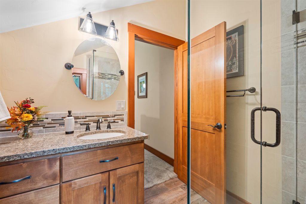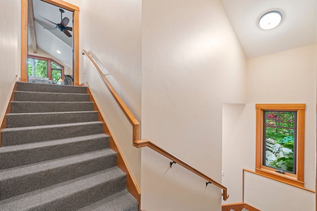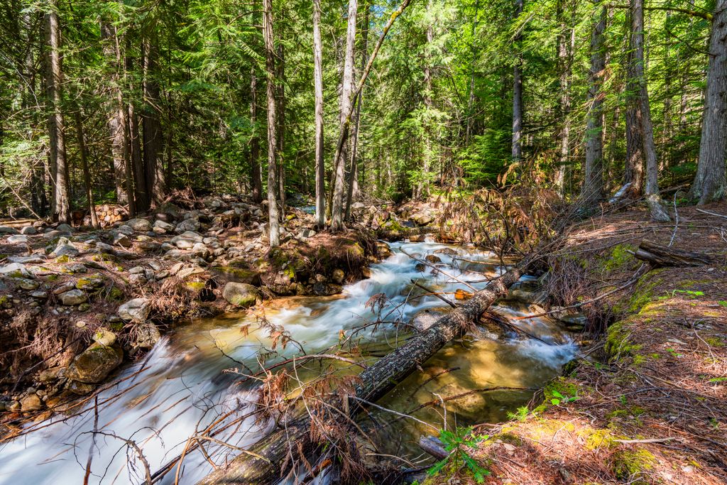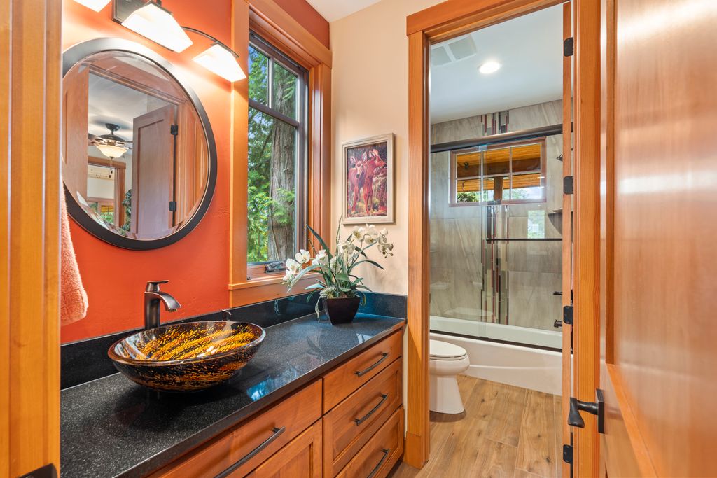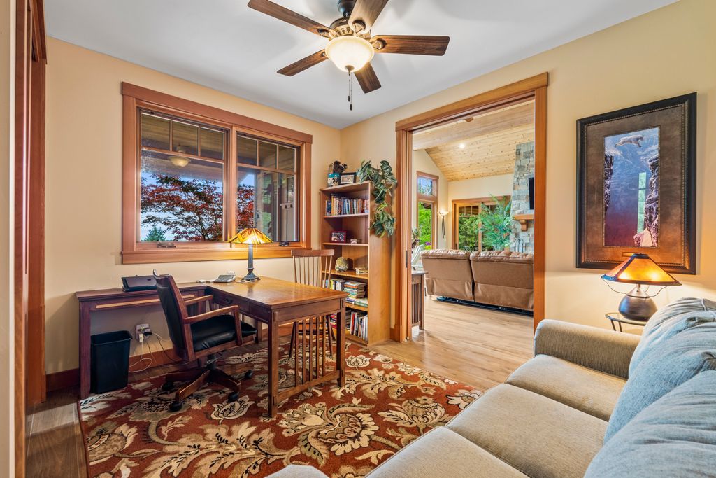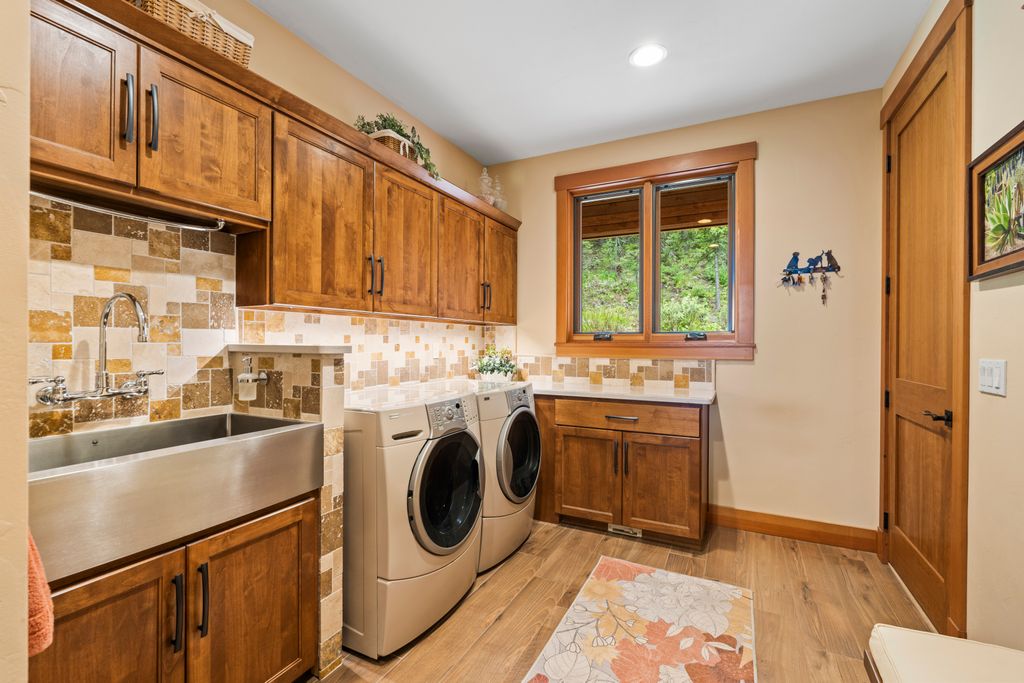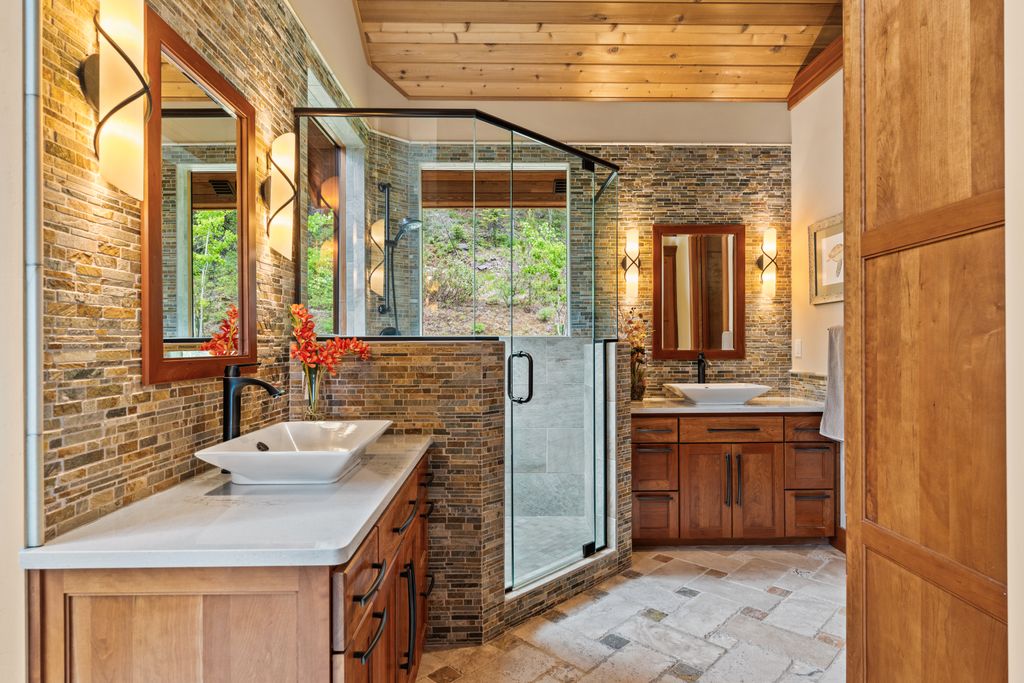 Meticulously constructed and artfully nestled into the foothills below Schweitzer Mountain, this exceptional property offers a rare blend of luxury, comfort, and natural beauty. With sweeping views of the surrounding mountains and the sparkling lake beyond, this home is a true haven for those seeking serenity, space, and inspired design. Bathed in abundant sunshine and softened by gentle mountain breezes, the home welcomes each day with stunning sunrises and a chorus of native wildlife. This 7.93-acre property is dotted with huckleberry bushes and thoughtfully landscaped with deer-resistant shrubs and perennials, providing a low-maintenance yet vibrant outdoor living experience. Inside, an open floorplan showcases exquisite craftsmanship, from exposed cedar beams, soaring tongue-and-groove ceiling to wide plank, wood grain tile flooring. Floor-to-ceiling windows frame breathtaking views and flood the home with natural light, while radiant in-floor heating keeps every space warm and inviting. The full masonry gas fireplace, clad in real stone veneer, anchors the great room with timeless mountain elegance. The gourmet kitchen is a chef’s dream, featuring ivory quartz countertops, a contemporary stone backsplash, high-end appliances and ample storage. The primary suite is a true retreat, with private access to two outdoor spaces, including a secluded deck with hot tub overlooking tranquil Schweitzer Creek. The en-suite bath is filled with natural light and finished with quartz countertops and heated travertine floors. Additional living spaces include a beautifully appointed 700 SF guest studio above the garage with a separate entrance, full kitchen, and bath—perfect for multi-generational living or guest accommodations. Two detached 320 SF custom studio spaces expand the property’s versatility. One features a kitchenette and bathroom, ideal for a home office, art studio, or guest quarters. The other is an off-grid escape overlooking the peaceful Selle Valley, offering unmatched privacy and inspiration. Whether you’re taking in the views or enjoying a peaceful stroll down to Schweitzer Creek, this one-of-a-kind mountain sanctuary offers not only a place to live—but a way of life.